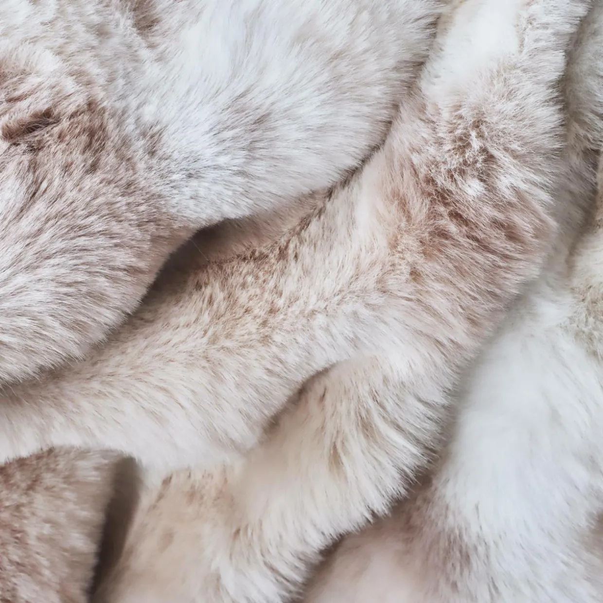Matière : 100 % polyester, recto fausse fourrure (500 gr/m²), verso flanelle (240 gr/m²).