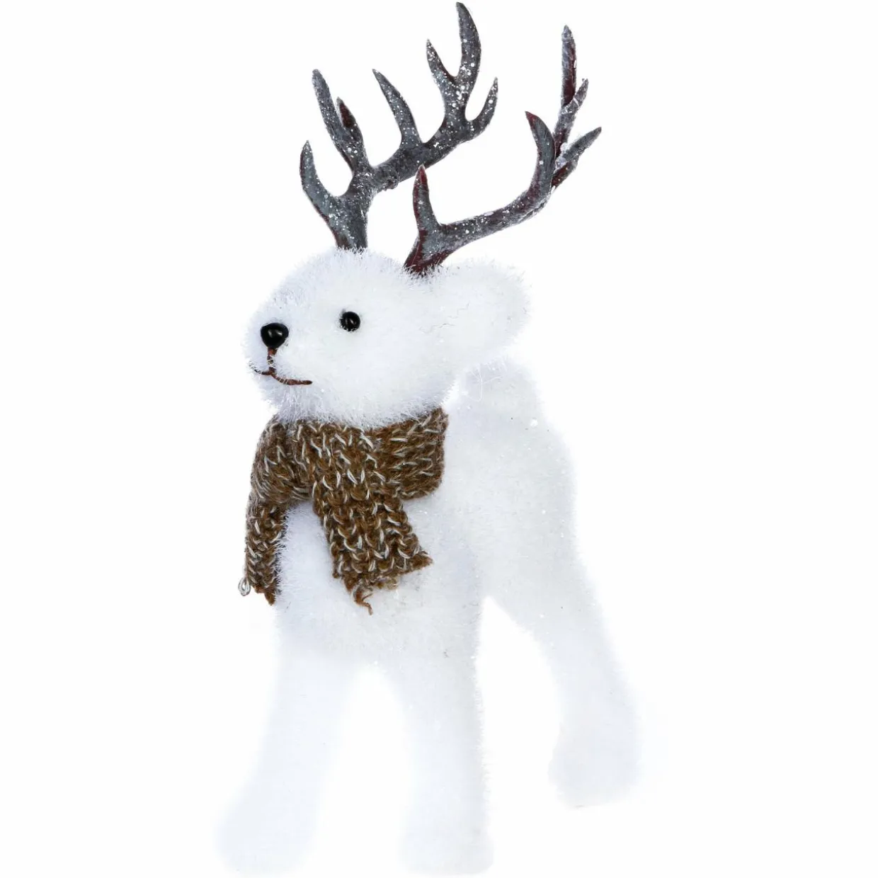 Suspension de fête (H12 cm) Rond Ours blanc et noeud en jute