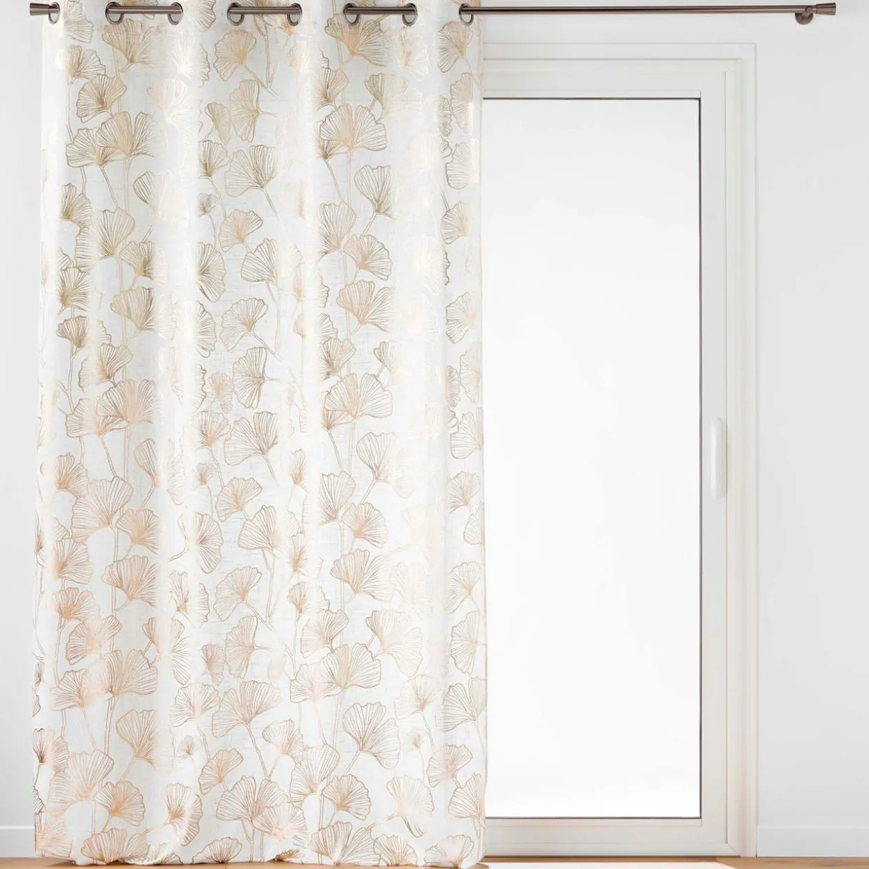 Ce rideau Kenzy, avec son imprimé métallisé floral, apporte une touche d’élégance et de sophistication à votre intérieur. Son style végétal s’intègre parfaitement dans une décoration naturelle et apaisante.