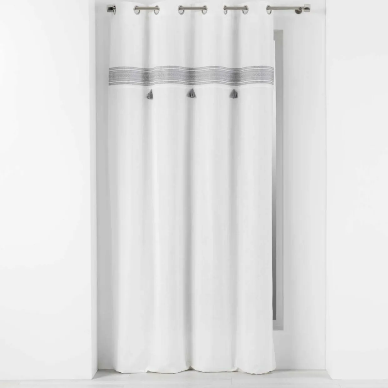 Ce rideau en coton possède une frise à motif ethnique et des pompons, il sera parfait pour habiller votre fenêtre.
