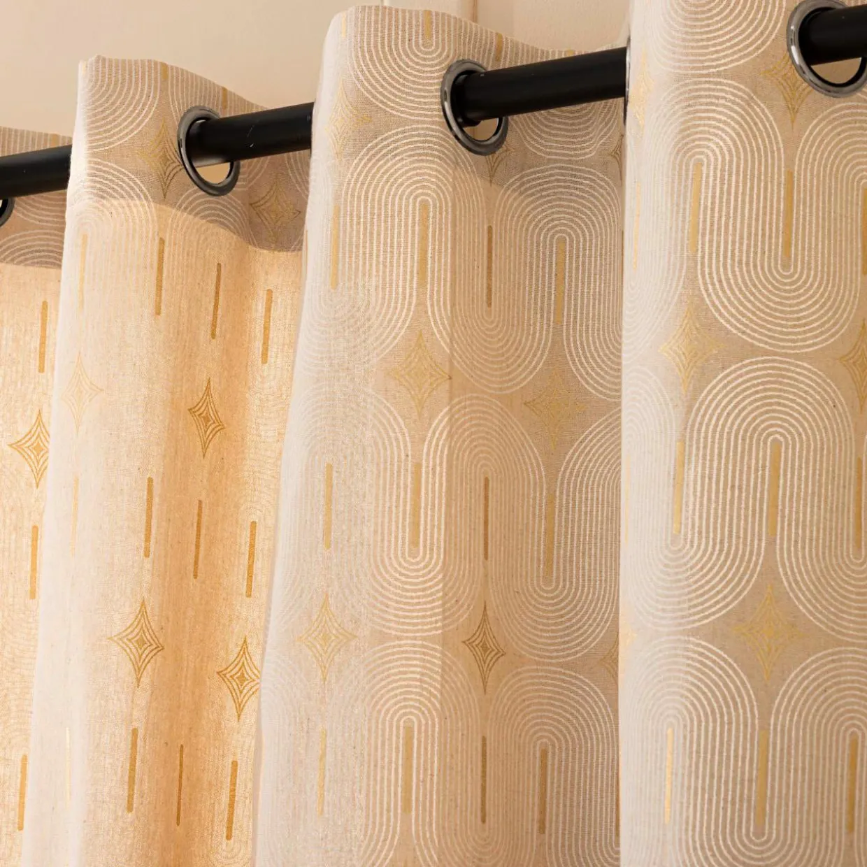 Ce rideau Ondine Blanc, en coton mélangé, apporte une touche d’élégance à votre intérieur. Son imprimé métallisé géométrique ajoute une note moderne et graphique à votre décoration.