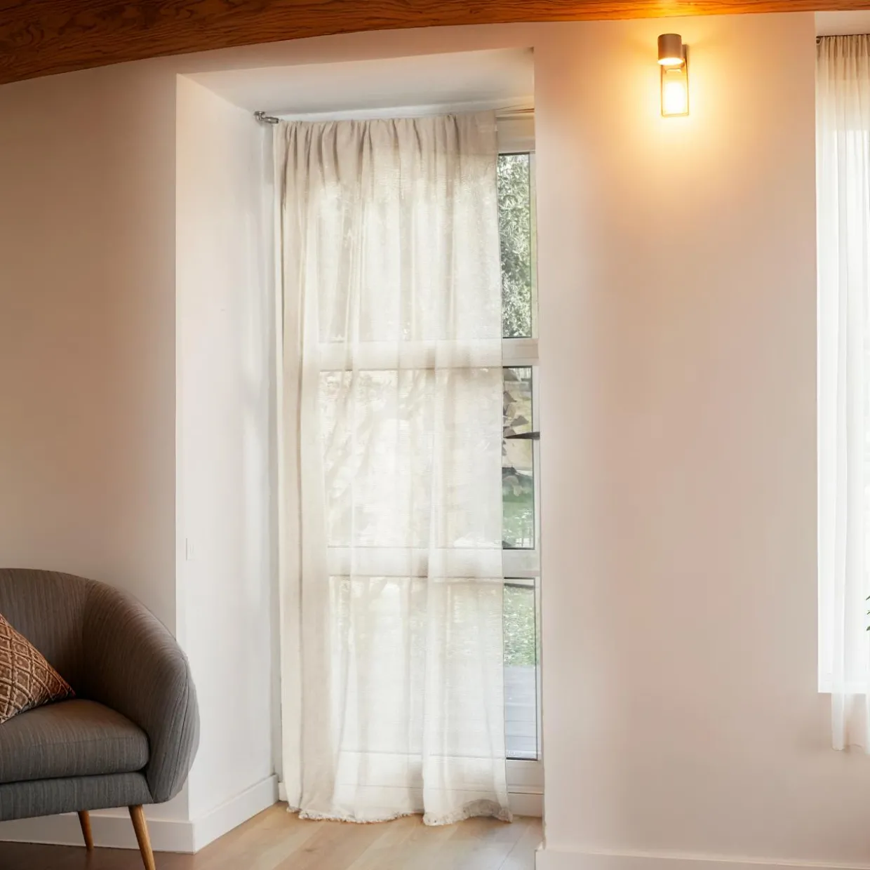 Finition : rideau à passe-tringle. Vendu avec un thermocollant (140 x 3 cm).