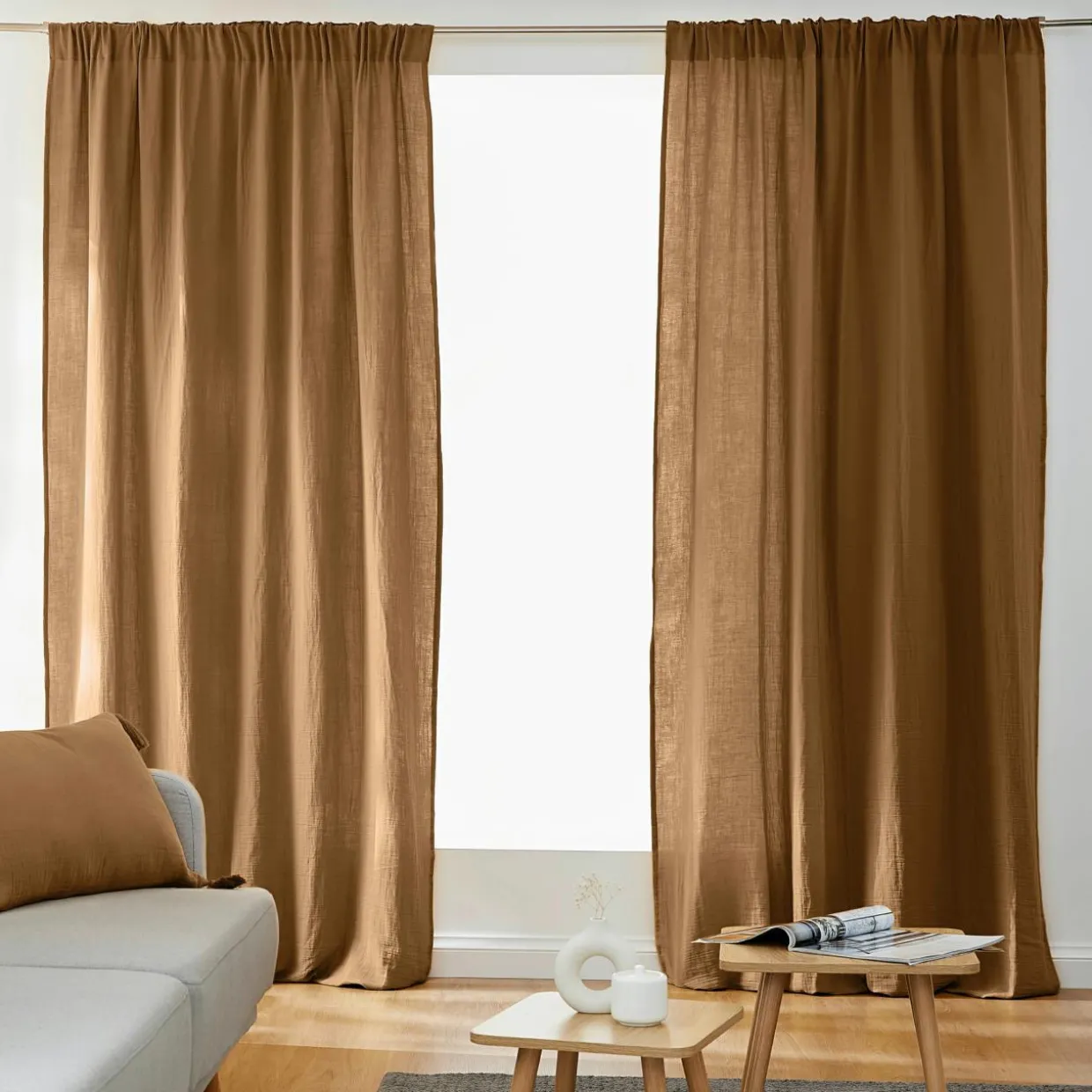 Naturellement gaufré, ce rideau en gaze de coton ne nécessite pas de repassage.
