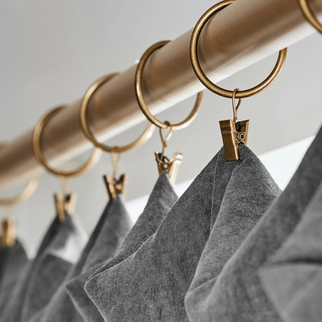 Finition : point bourdon, 8 anneaux pinces fournies couleur bronze (diamètre extérieur 4,5 cm et diamètre intérieur 3,8 cm).