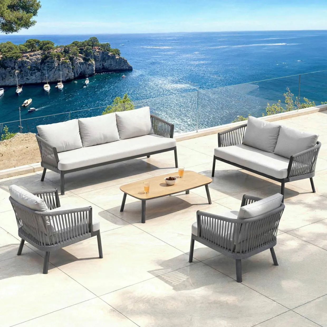 Il comprend : un canapé 3 places, un canapé 2 places, deux fauteuils et une table basse rectangulaire.