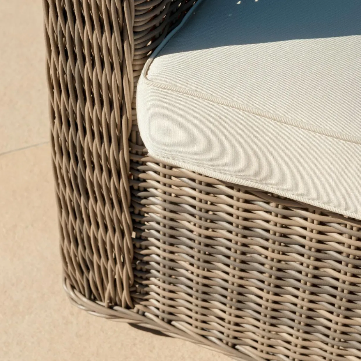 – Coussins : déhoussables et déperlants en polyester filé doux (220 g/m²). Densité coussin d’assise : 21 kg/m³.