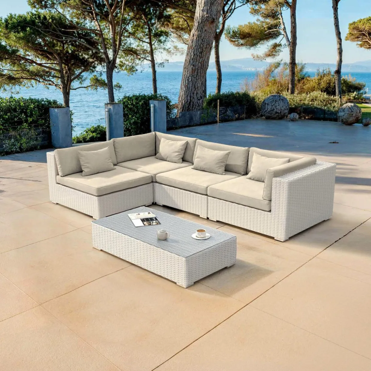 Aucun montage nécessaire. Un système de clips ingénieux permet de fixer solidement les éléments entre eux. Tous les coussins sont inclus. À noter pour la livraison : les housses peuvent être expédiées séparément de la structure.
