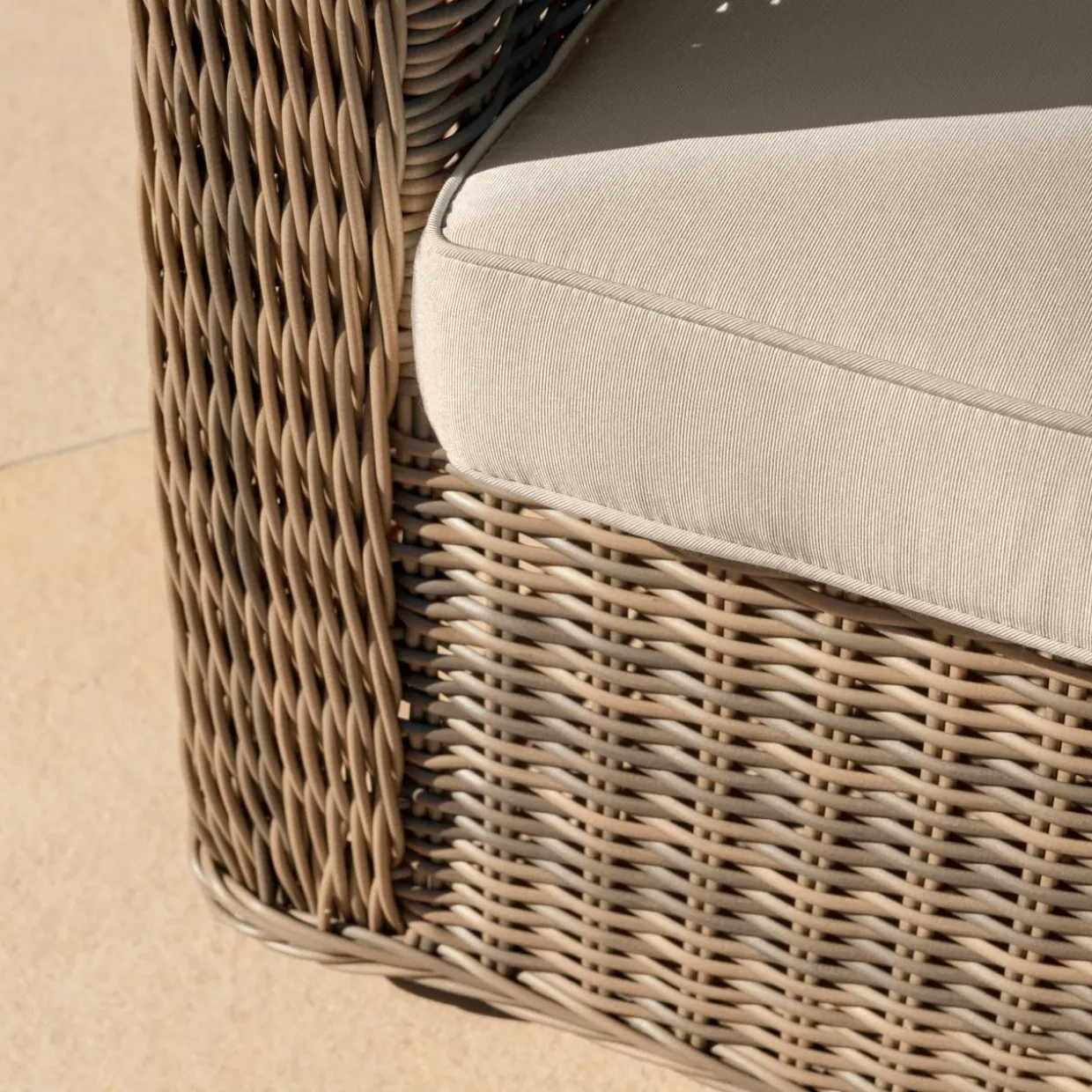 – Coussins : déhoussables et déperlants en polyester filé doux (220 g/m²). Densité coussin d’assise : 21 kg/m³.