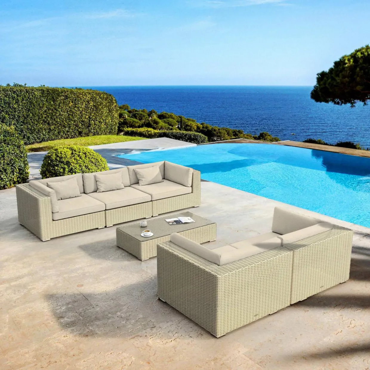 Aucun montage nécessaire. Un système de clips ingénieux permet de fixer solidement les éléments entre eux. Tous les coussins sont inclus. À noter pour la livraison : les housses peuvent être expédiées séparément de la structure.
