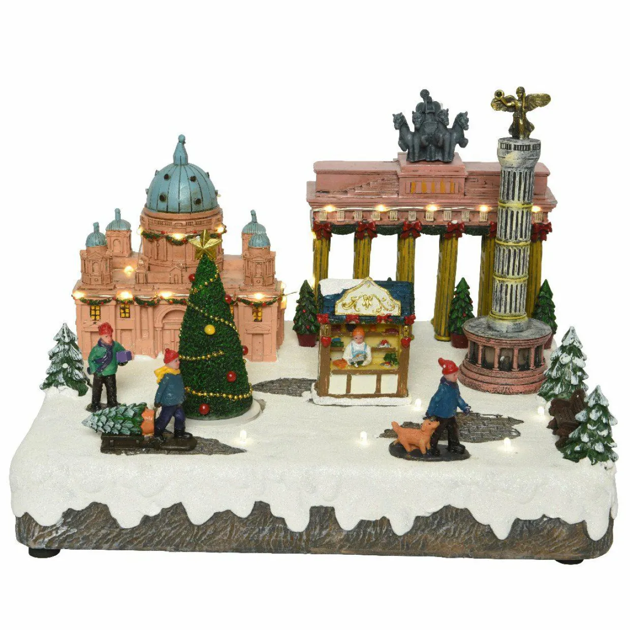 Ce village est équipé de 25 LED blanc chaud non remplaçables, il est également musical et le grand sapin décoré est en mouvement. La longueur du câble est de 180 cm.