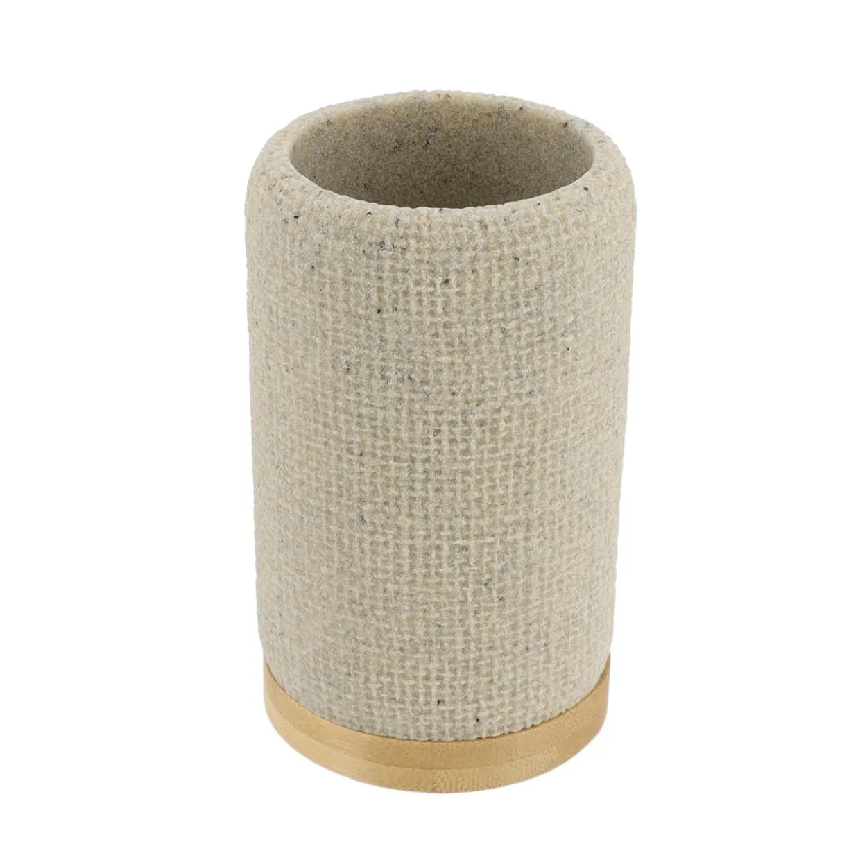 Avec ses motifs subtilement maillés, ce joli ensemble d’accessoires évoque une ambiance sophistiquée et relaxante dans votre salle de bain. Il comprend un gobelet, un porte-savon et un distributeur de savon, tous fabriqués en bambou et polyrésine de qualité.