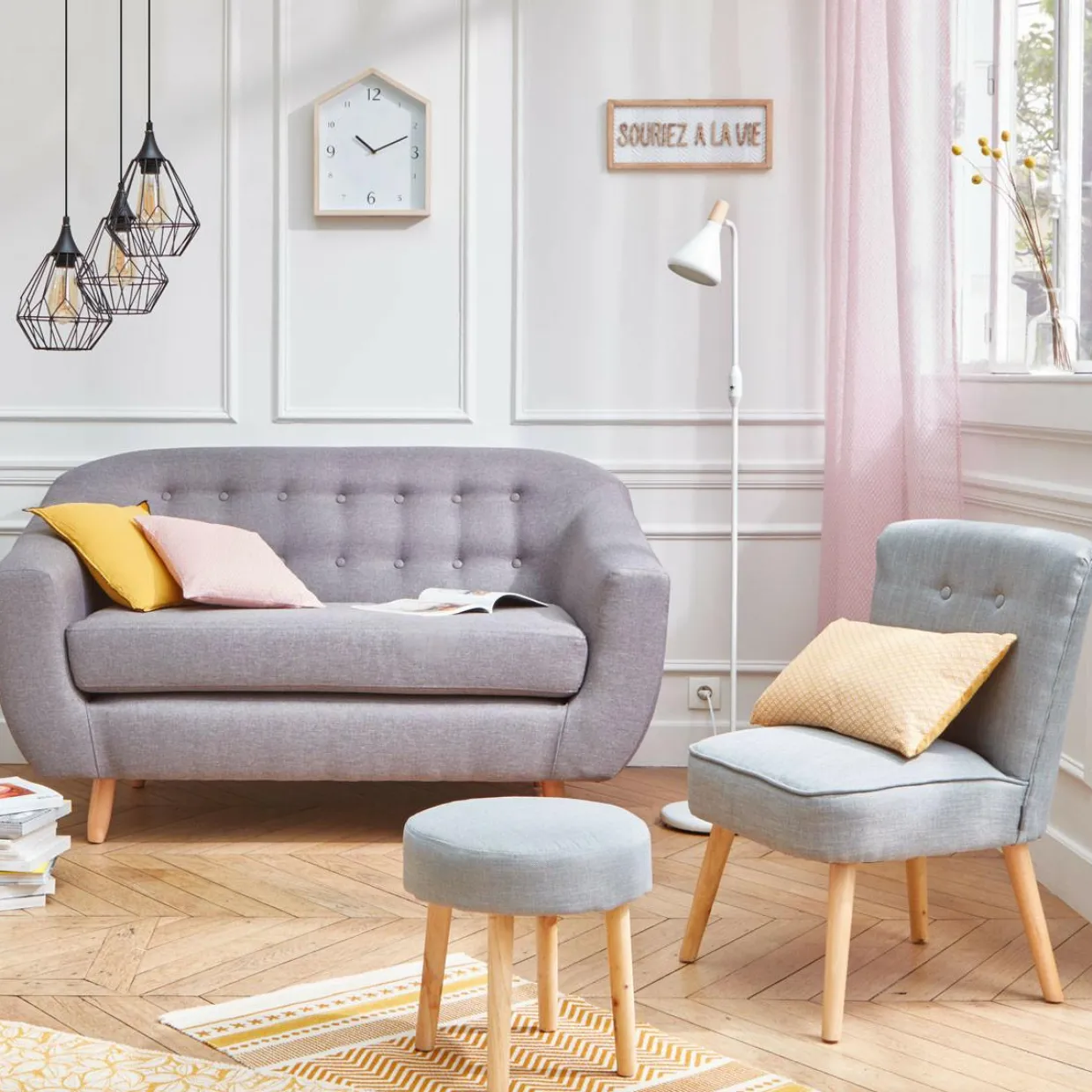 Cette jolie suspension filaire possède 3 abats- jours en métal à l’allure contemporaine.
