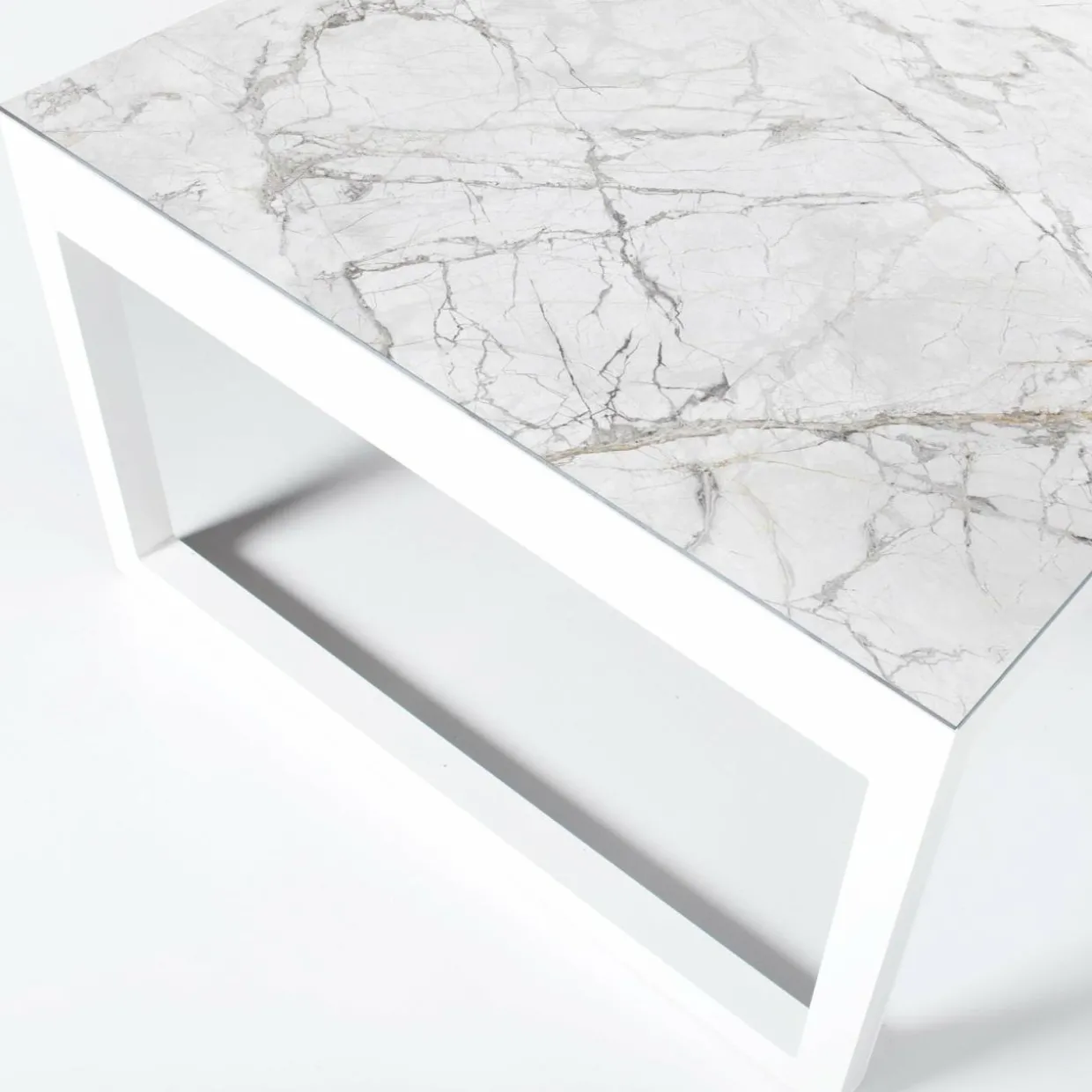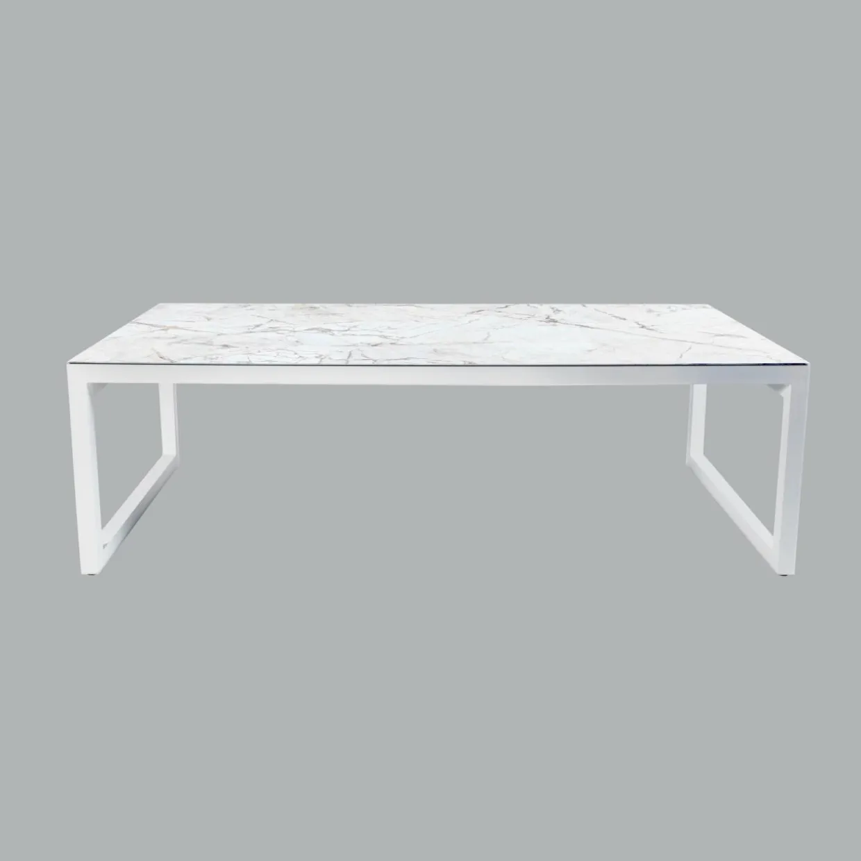 Choisissez l’élégance en installant sur votre terrasse la table de jardin Kore 12 places au design contemporain. Sa structure en aluminium solide et son plateau en céramique effet marbré blanc allient modernité et durabilité, pour un espace repas à la fois chic et fonctionnel.
