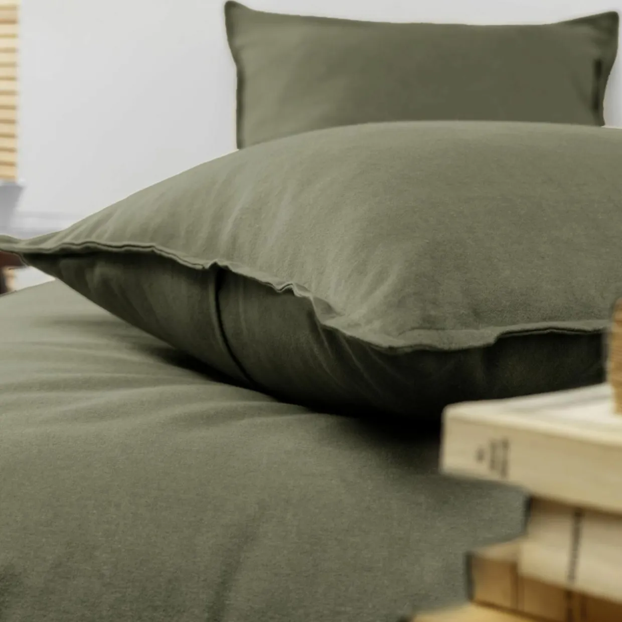 Douce et chaleureuse, la taie d’oreiller Nina en flanelle de coton vous enveloppe dans un cocon de confort. Sa couleur vert romarin apporte une touche de fraîcheur à votre chambre, idéale pour les nuits d’automne et d’hiver.