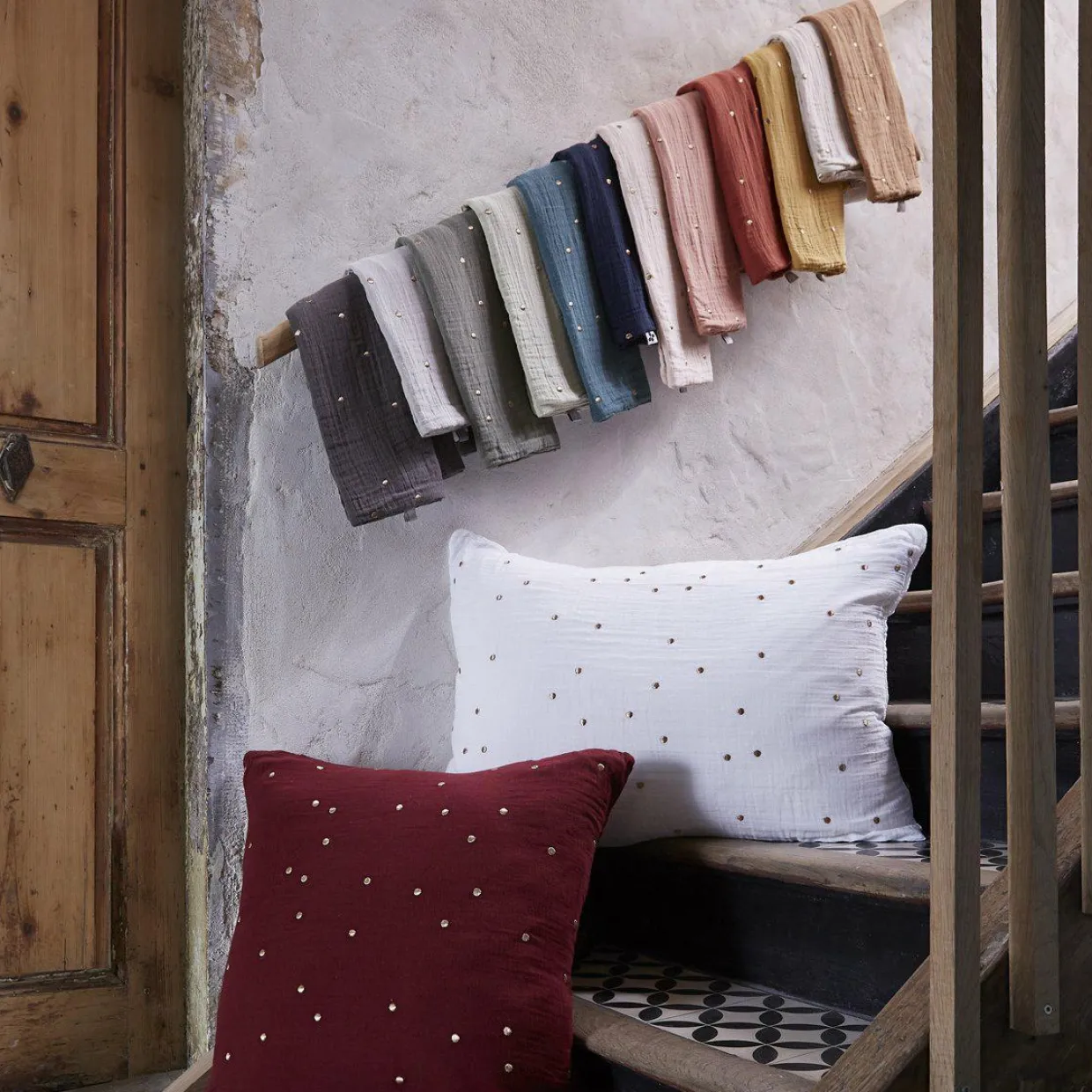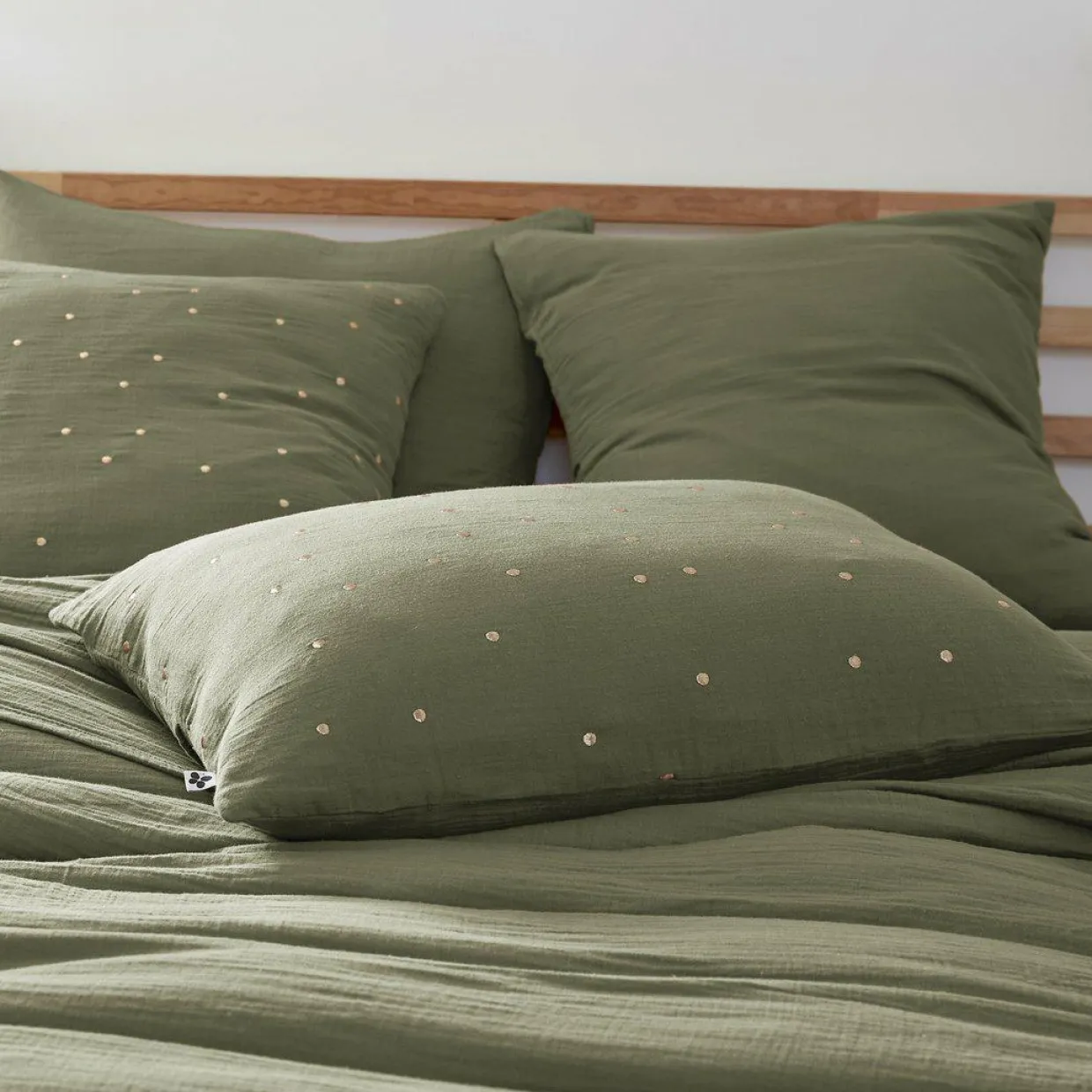 Imprimé : taie à pois brodés.