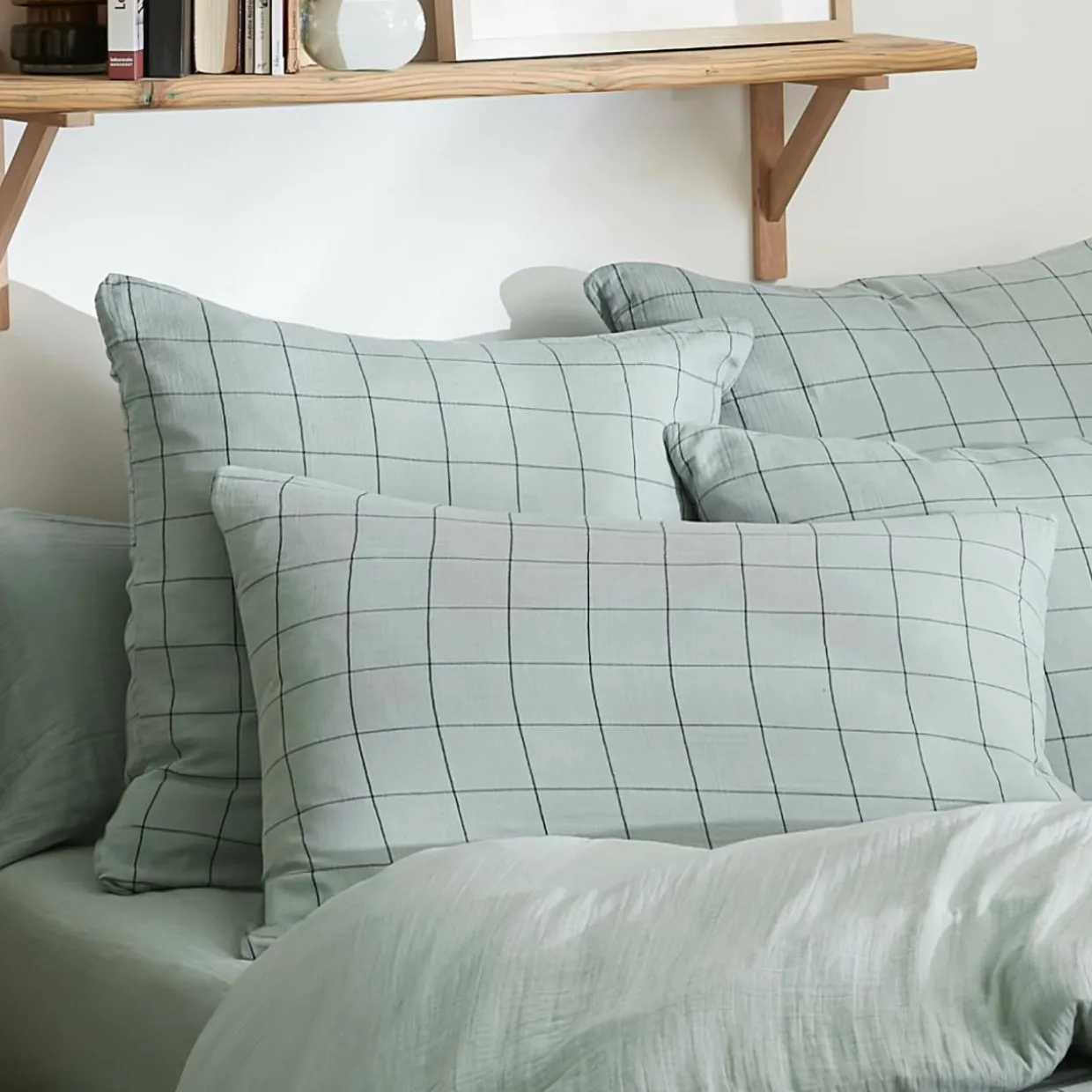 Taie d’oreiller rectangulaire gaze de coton (50 x 70 cm) Gaïa Match Vert eucalyptus