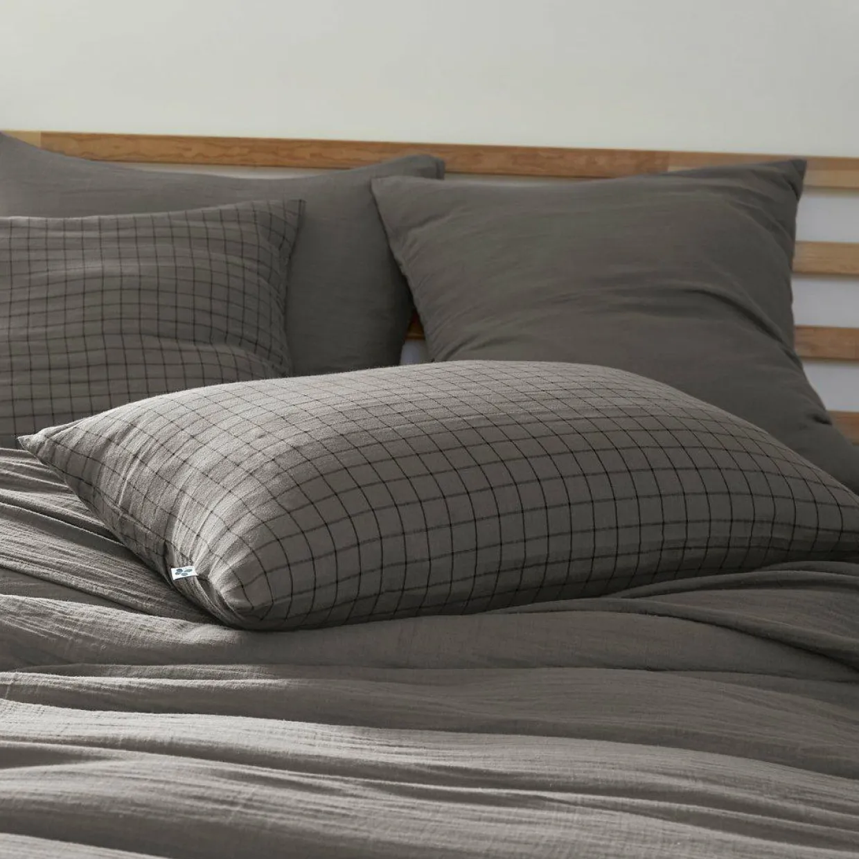 Imprimé : taie à petits carreaux.