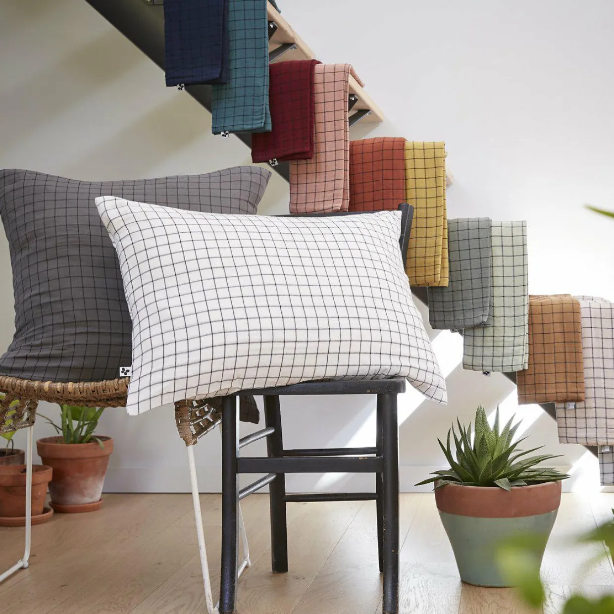Imprimé : taie à petits carreaux.