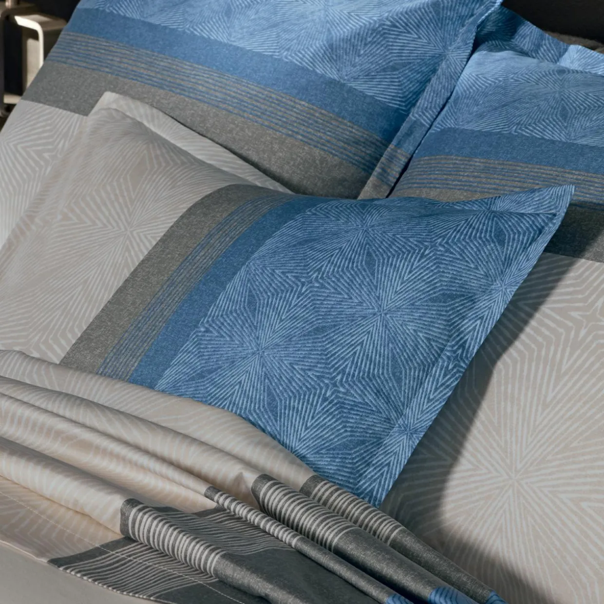 Taie d’oreiller rectangulaire satin de coton (50 x 70 cm) Tiago Bleue