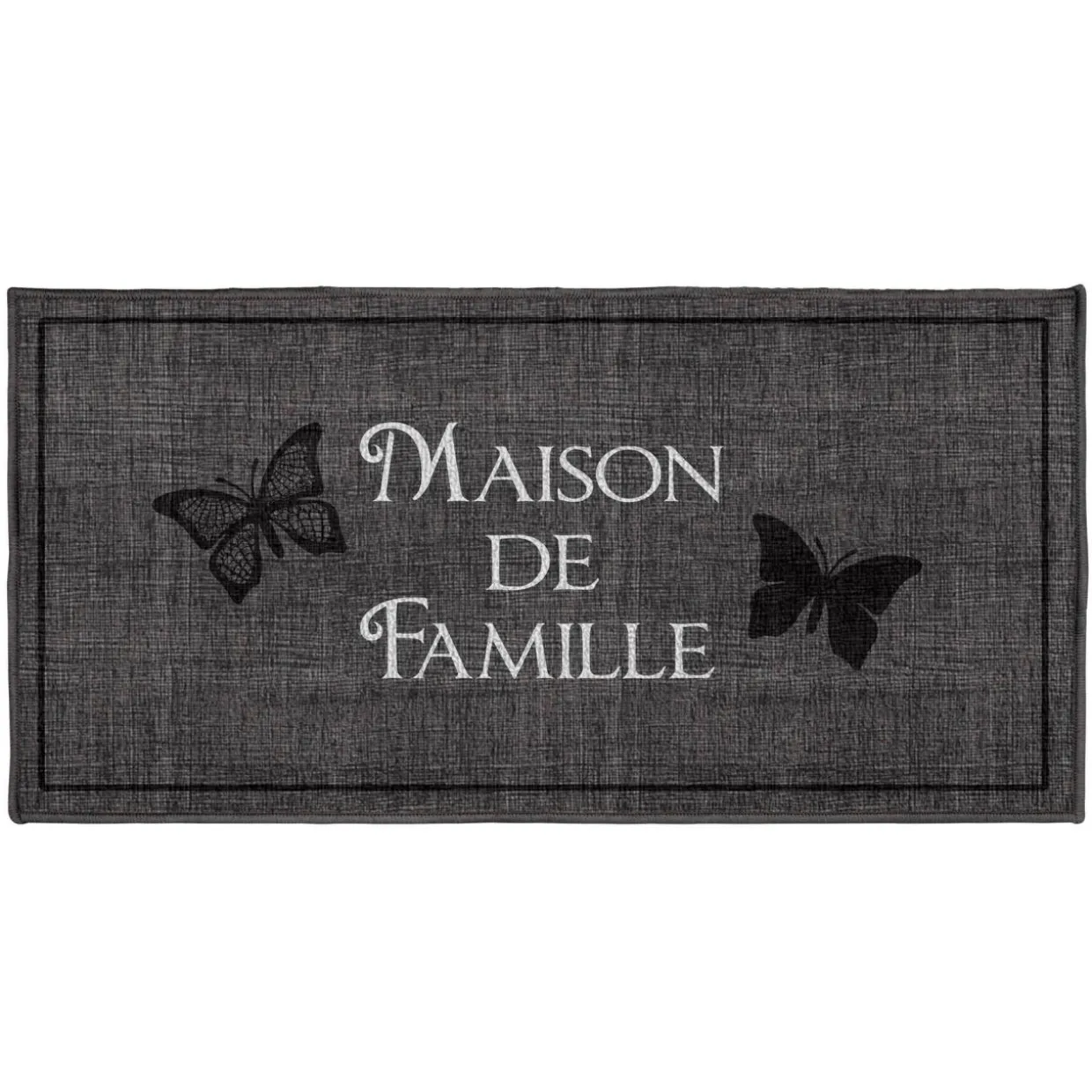 Imprimé : motif papillon et lettres.