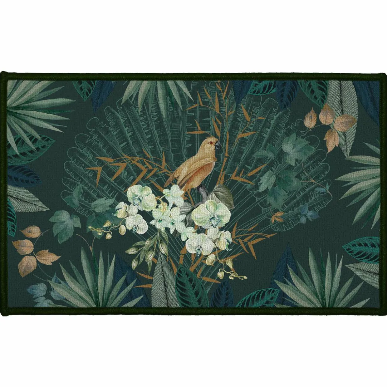 Imprimé : tapis à motifs fleurs et oiseau.