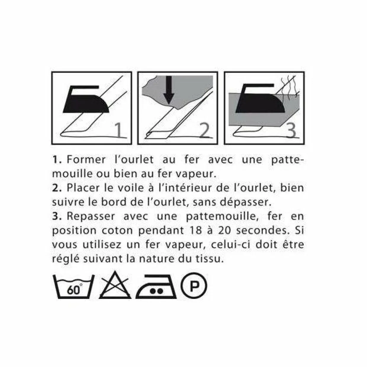 Permet de faire un ourlet parfait sans couture : on place la bande au niveau de l’ourlet entre les deux parties du rideau, un coup de fer à repasser et c’est fini.