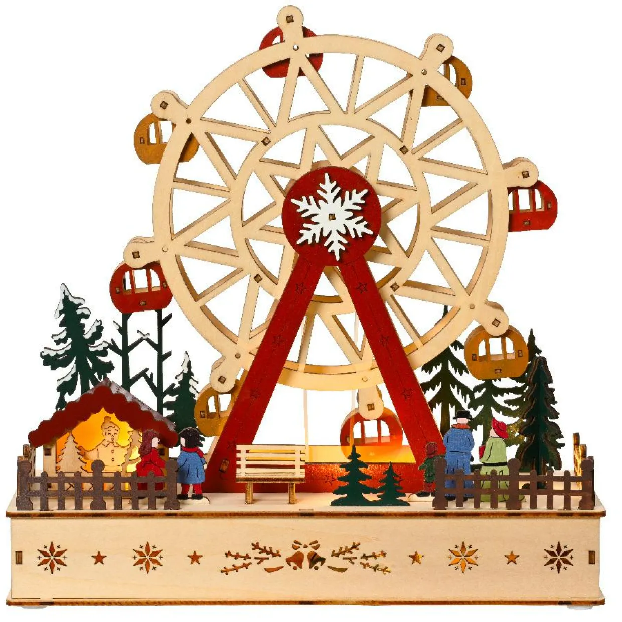 Mode de fonctionnement : fonctionne avec 3 piles AAA (non fournies). Possède 7 LED en fonction lumière fixe. La scène est en mouvement, musicale et lumineuse.