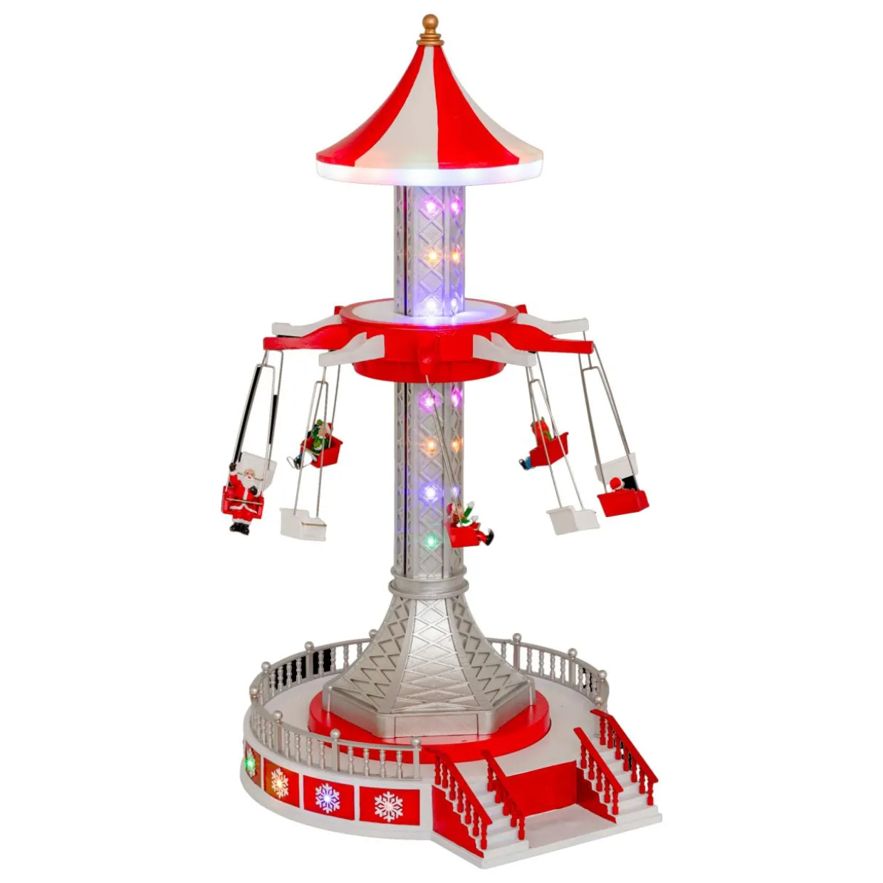 Ce splendide village de Noël musical et animé est un véritable enchantement pour les yeux. Avec son manège de chaises volantes, il apportera une touche de féerie à votre décoration de Noël.