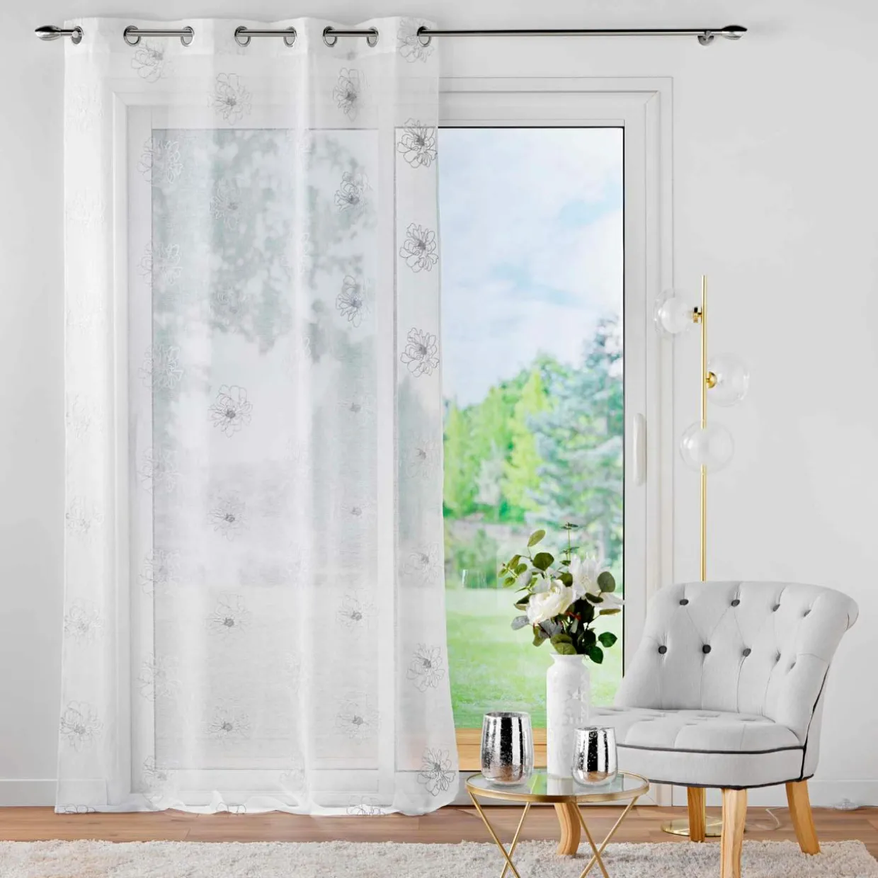 Adoptez ce voilage frais et vaporeux, à motifs floraux brodés, pour habiller votre fenêtre en décorant votre espace.