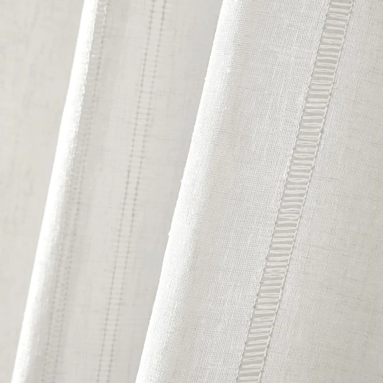 Craquez pour la collection Léontine by Eminza, une sélection de voilages à fines rayures au style naturel et doux.