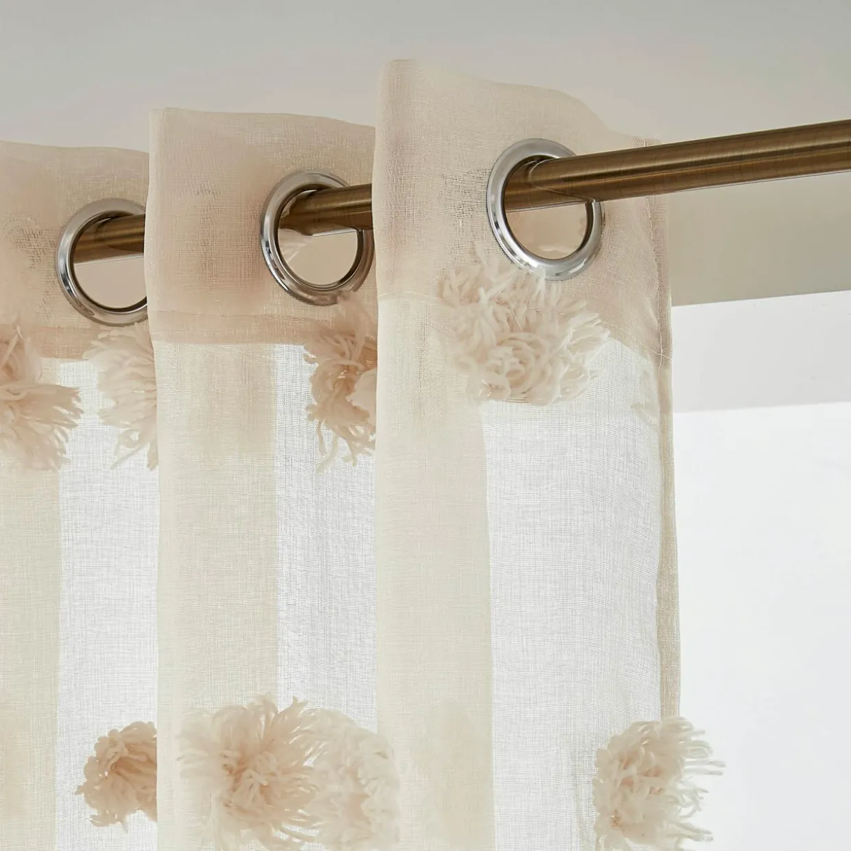 Voilage oeillets pompons (140 x 280 cm) Suzie Beige